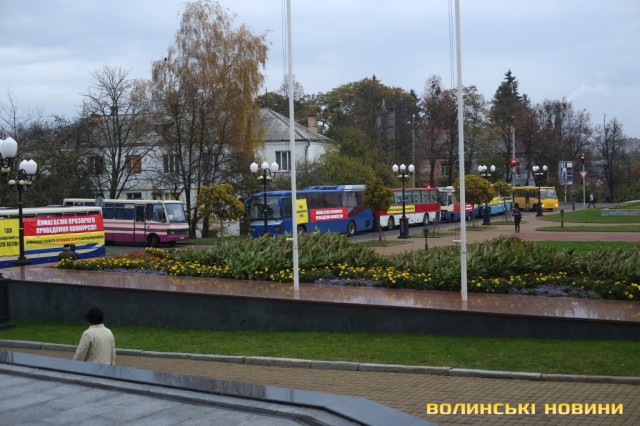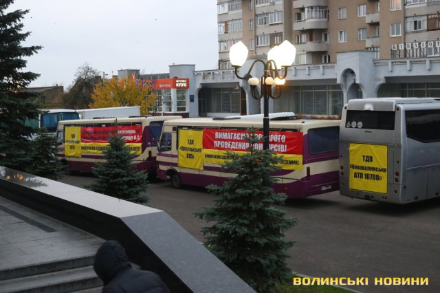Акція протесту волинських перевізників під стінами будівлі ОДА стартувала о 8 годині 27 жовтня.