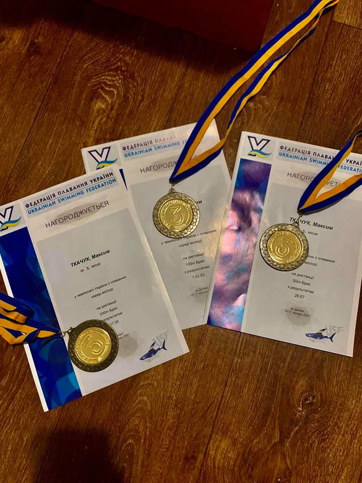 Дуже плідними на медальний доробок стали змагання для Максима Ткачука, який здобув 3 бронзові медалі на дистанції 50 метрів брасом, 100 м брасом та 200 м брасом серед молоді. На всіх дистанціях спортсмен пройшов відбір на юніорський чемпіонат Європи з плавання, який відбудеться в Хорватії 7-11 липня 2021 року. На дистанції 50 м брасом Максим Ткачук двічі побив рекорд Волинської області. Тренує Максима Ткачука Володимир Самчук.