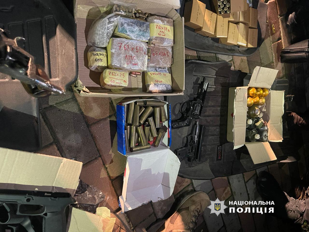 У рамках реалізації матеріалів кримінального провадження, розпочатого за ч. 1 ст. 263 Кримінального Кодексу України, поліцейські провели обшуки в Києві, Київській та Запорізькій областях.За адресами проживання, в автотранспорті й місцях зберігання та переробки зброї вилучили: гвинтівки, рушниці, пістолети, складові запчастини до зброї (магазини, рамки, стволи), понад 10 кілограмів пороху, понад півтори тисячі одиниць набоїв різних калібрів, а також гільзи, патрони та кулі. Крім того, вилучено гранати, запали до них, гранатомет з гранатометними пострілами, кейси для зберігання пістолетів.