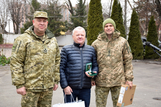 Під час заходу благодійники передали прикордонникам чергову партію допомоги. Ще один мобільний лазне-пральний комплекс від Волинської ТПП та компанії «Теріхем Тервакоскі» вирушить на передову для покращення побутових умов наших бійців. Також охоронці кордону отримали від меценатів безпілотники Mavic3, антену для підсилення сигналів, генератори, грілки, зарядні станції, мережеве та комунікаційне обладнання й інше майно.А представники благодійного фонду «Сучасна Україна» та «Залишайся з Україною» передали прикордонникам катер та камери відеоспостереження.