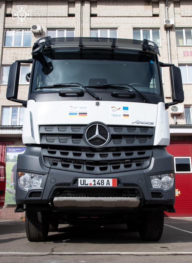 Вантажівка на шасі «мерседес» вантажопідйомністю 27 тонн призначена для перевезення різних матеріалів під час проведення аварійно-рятувальних робіт та для здійснення заходів із запобігання надзвичайним ситуаціям. Мікроавтобус на шасі «фіат» буде використовуватися для перевезення особового складу до місця проведення робіт.
