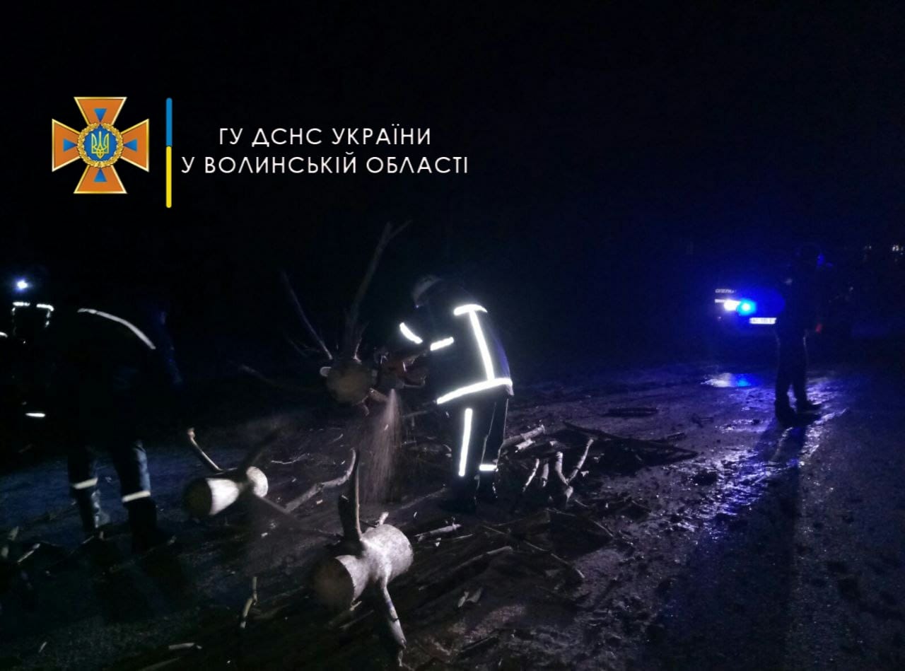 У селі Крупа Луцького району рятувальники ДПРЧ-1 м. Луцька, а у селі Грудки Камінь-Каширського району рятувальники ДПРЧ-8 з райцентру розкрижували повалені на проїжджу частину дороги дерева.