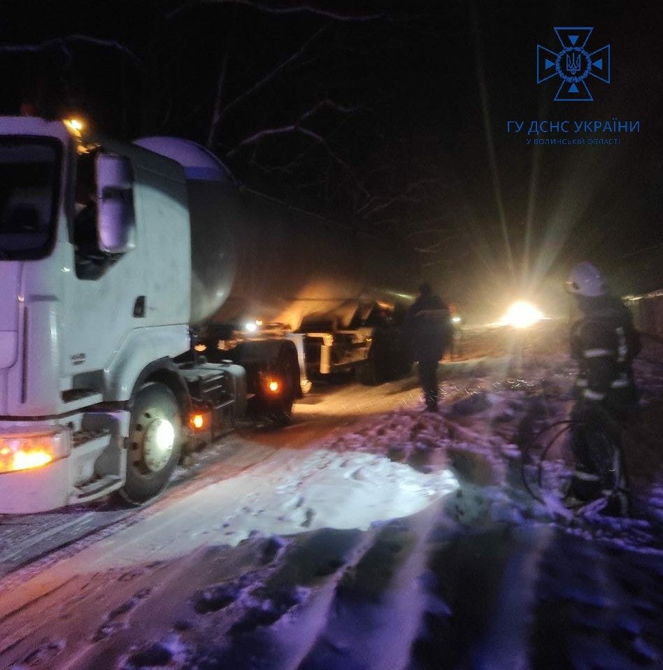 Крім того, біля села Хрипаличі Володимирського району, у селі Старовойтово Ковельського району, а також біля Ковеля й у Ківерцях рятувальники відбуксирували чотири вантажівки, що застрягли у снігу посеред дороги й перегородили рух автомобілів.