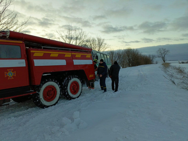 Волинські рятувальники визволили зі снігового полону автобус, автівку та доправили медиків до пацієнта з серцевим нападом