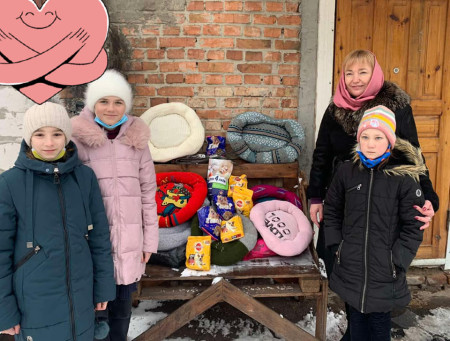 Шестикласники разом із заступником директора з навчально-виховної роботи Людмилою Демидюк привезли лежаки для чотирилапих, що їх пошили власноруч. І, звісно, діти не забули про смаколики для котиків та собачок.