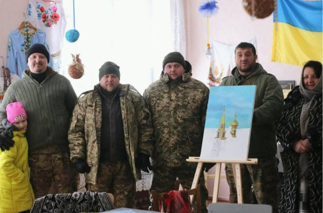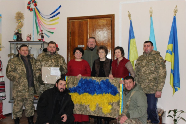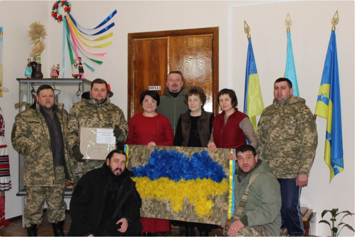 Окрім того, великомасштабну карту України, складену із жовтоблакитних бантиків, душпастирі передали до Волноваського районного краєзнавчого музею. Ще один такий виріб у вигляді сонця залишили для бійців.