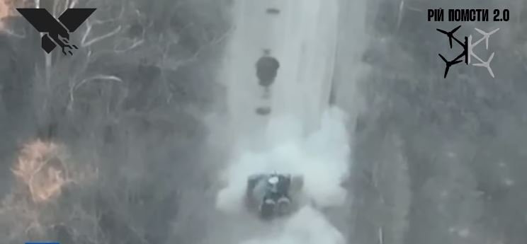 Група окупантів мчала у своїх неправедних справах, проте була вистежена бійцями РУБпАК 100 ОБр «VORON 100». Точний удар FPV-дроном – і «Тигр» перетворюється на ефектно-бавовняний смолоскип», – йдеться у підписі до відео.