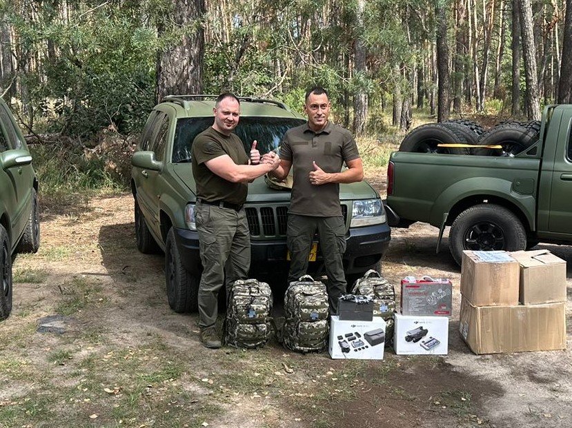 Разом з колегами Віктор Володимирович привіз бійцям 100 ОБр ТрО три повнопривідних автомобілі (інші для фронтових доріг просто не підходять!), два квадракоптери DJI MAVIC 3, один (але дуже крутезний!) тепловізор, три оснащених усім необхідним медичних рюкзаки, комплекти коліс підвищеної прохідності для автівок, а також кілька ящиків смаколиків для бійців.