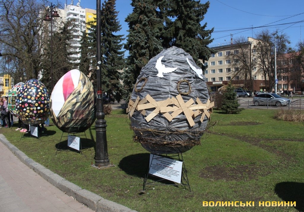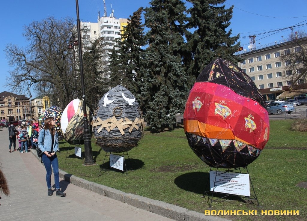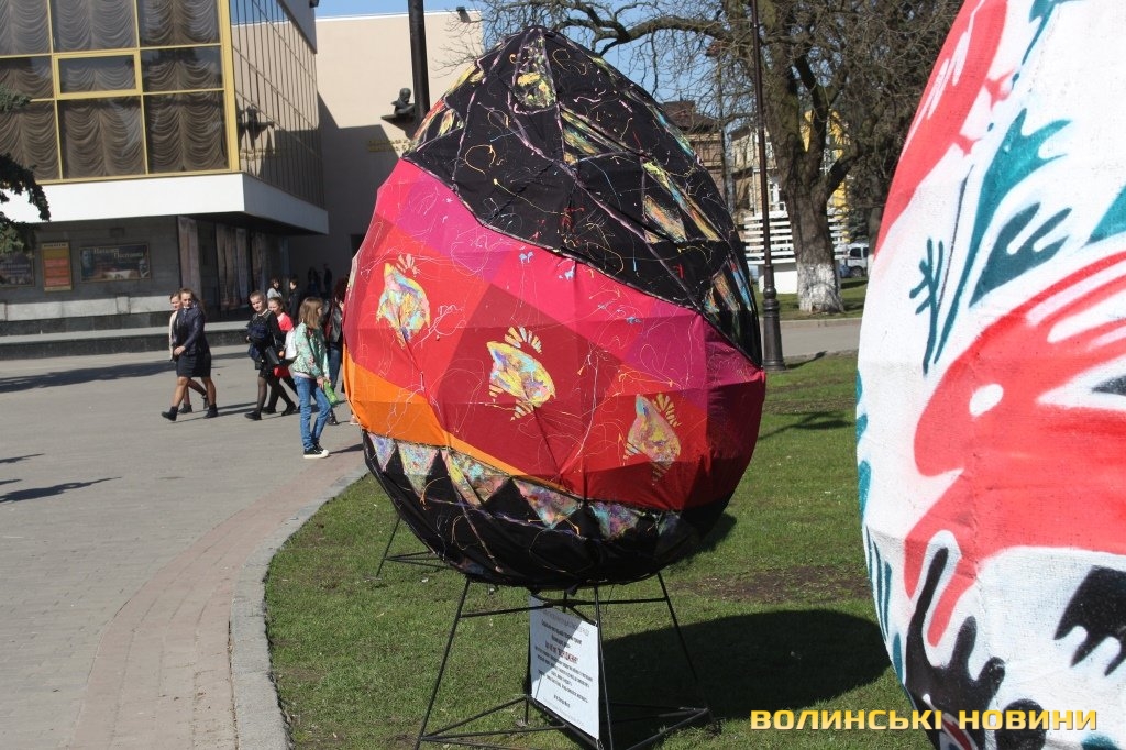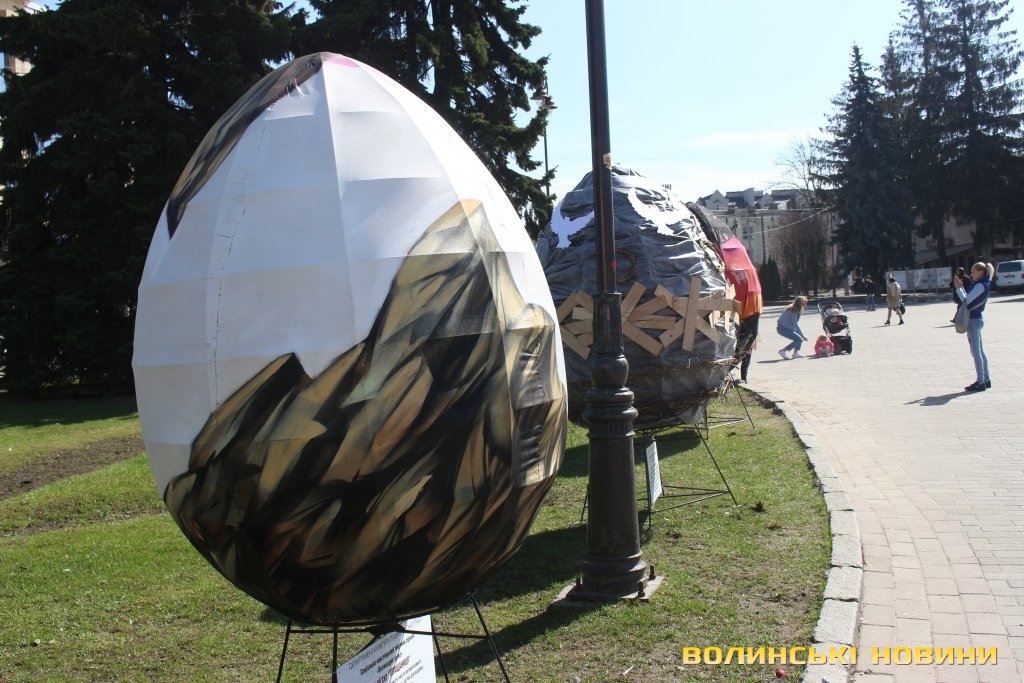 Два оригінальні мистецькі об’єкти, присвячені Великодню – традиційні волинські писанки «Триєдине» від Луцької художньої школи та проект у вигляді сімох арт-об’єктів «Великоднє диво» презентували 5 квітня на Театральному майдані у Луцьку.