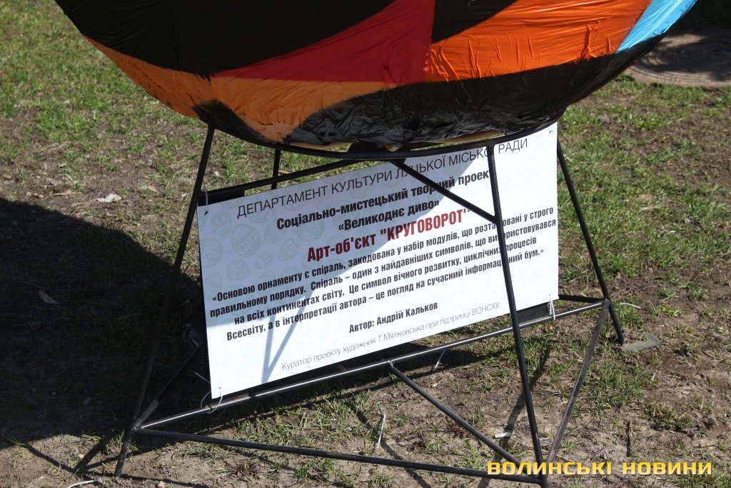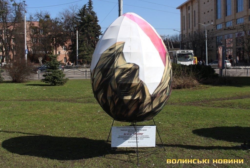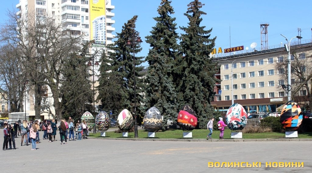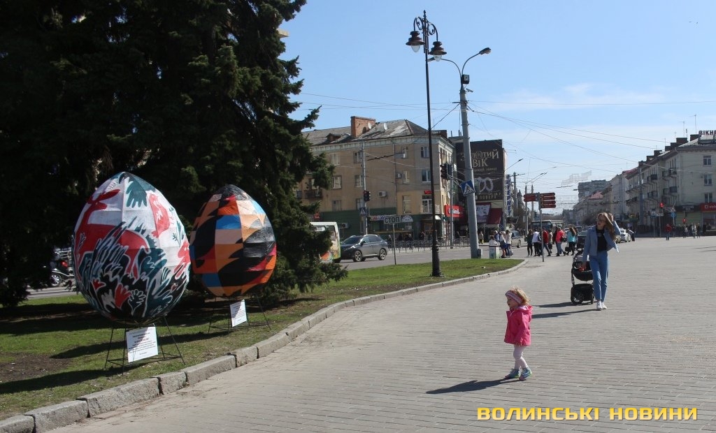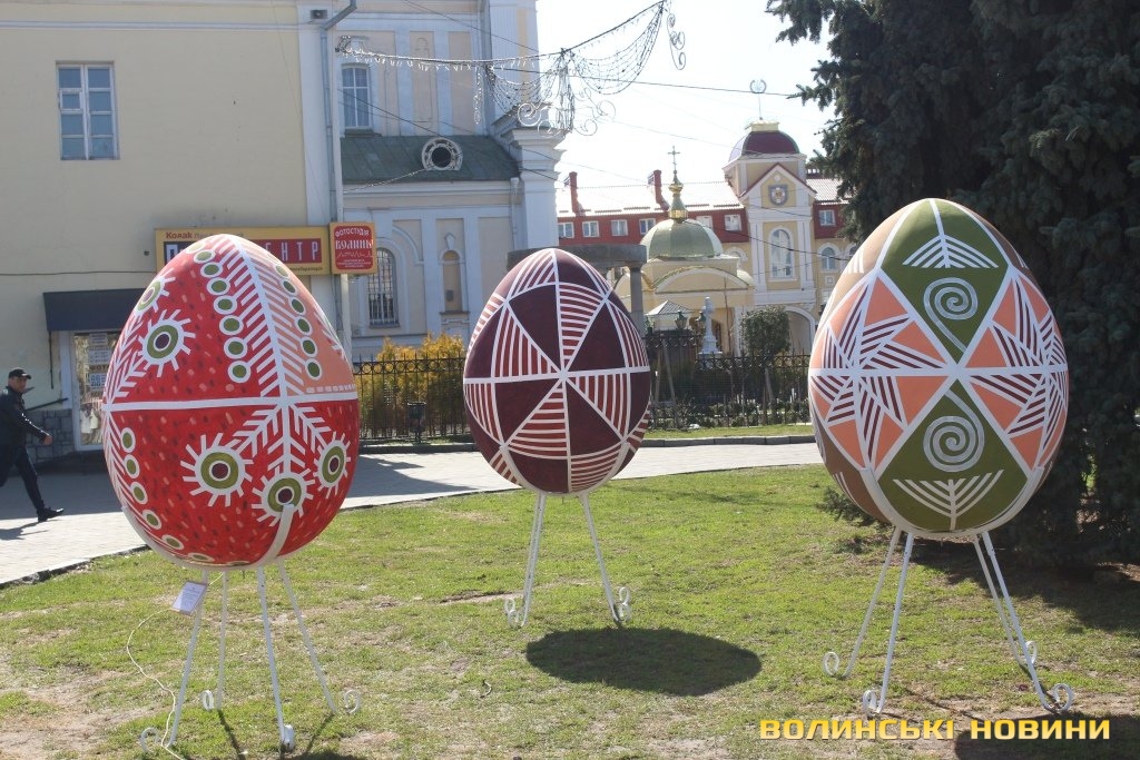 Два оригінальні мистецькі об’єкти, присвячені Великодню – традиційні волинські писанки «Триєдине» від Луцької художньої школи та проект у вигляді сімох арт-об’єктів «Великоднє диво» презентували 5 квітня на Театральному майдані у Луцьку.