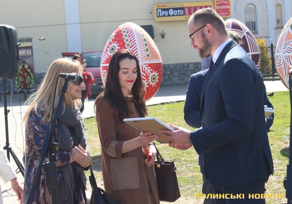 Секретар Луцької міськради, виконувач повноважень міського голови Григорій Пустовіт подякував усім, хто дарує творчість людям. Він розповів, що вчора зустрічався з представниками українців, які проживають у Сербії. Вони зберігають наш дух, традиції, мову, культуру і саме писанка стала головним об’єктом в одному з їхніх журналів, аби передати дітям українську духовність, традиції, історію. Він подякував творцям арт-об’єктів за креативність та привернення уваги до традицій. З його слів, ці витвори мистецтва роблять нашу буденність кращою та цікавішою.
