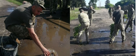 Волинські військові пояснили, навіщо пляшками вичерпували воду з калюж