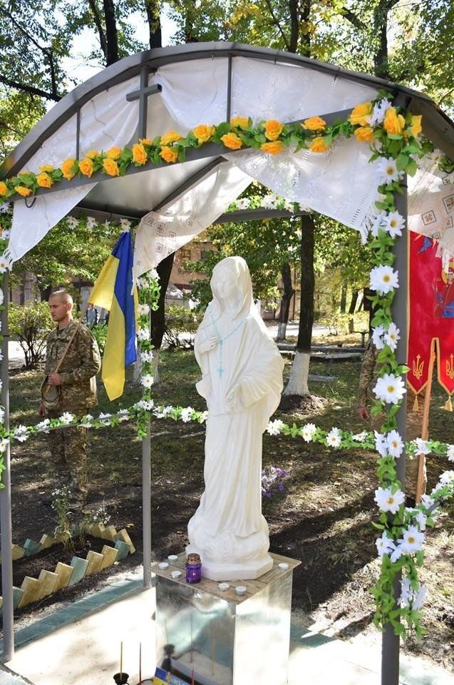Саму каплицю та фігуру Божої Матері в прифронтовому містечку встановили та оздобили бійці одного з підрозділів бригади. Ідейним натхненником та реалізатором доброї справи став Михайло Федорович – «Батя».
