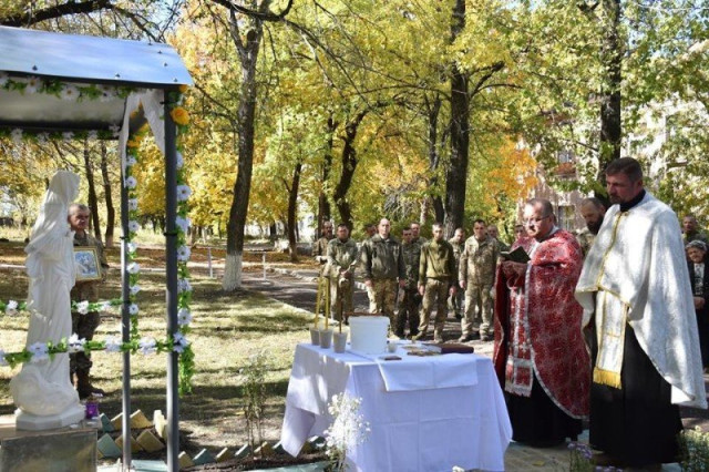Недільного ранку на освячення каплиці з синьо-жовтими державними стягами та іменною хоругвою підрозділу зібралися військовослужбовці та місцеві мешканці. Капелани бригади отець Ігор та отець Михайло провели урочисте богослужіння та освятили каплицю, окропили освяченою водою та миропомазали всіх присутніх. «Батя», на рахунку якого це вже не одна така капличка, побажав усім, аби Матір Божа їх оберігала.