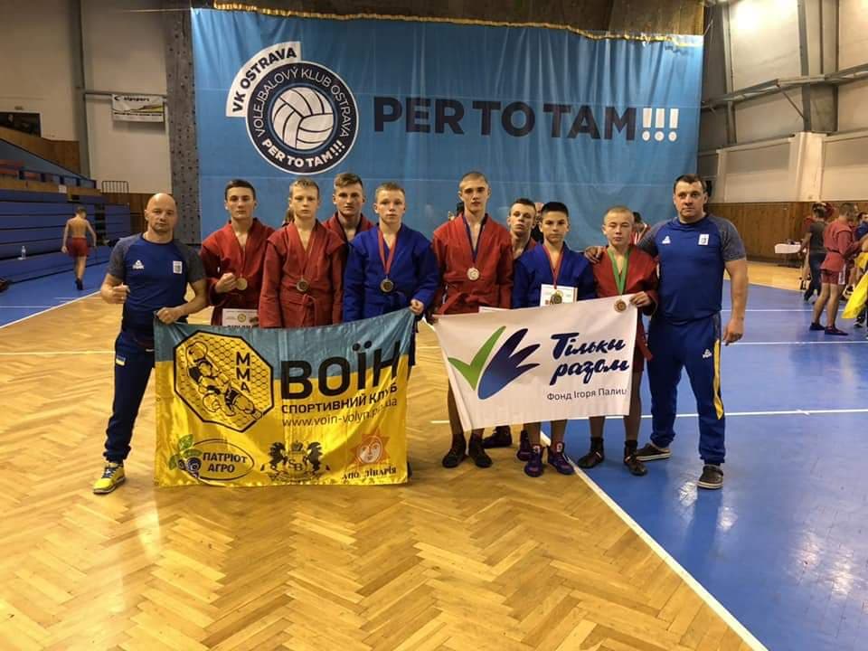 До складу збірної України, яка в середині жовтня побувала в Чехії на Чемпіонаті Європи з бойового самбо серед юнаків, увійшло аж 9 вихованців клубу «Воїн». І хлопці повернулися зі змагань не з пустими руками: Місюк Андрій, Робітницький Олександр, Пасич Юрій та Юскевич Назар стали чемпіонами; Пасич Іван, Чайковський Максим, Михальчук Денис зайняли другі місця. А Ковальський Вадим - отримав бронзу.«Завдяки зусиллям наших спортсменів Україна в командному заліку зайняла ПЕРШЕ командне місця. Успішний виступ бійця - це об’єктивна реальність, якою завершується процес реалізації задуму», - вважає старший тренер з СК «Воїн» Андрій Зінчук.«Завдяки тісній співпраці тренерського складу СК «ВОЇН» та Федерацій ММА та бойового самбо України у Волинській області, а особисто з їхніми президентами - Михайлом Смолкою та Олександром Редьком, УСІ плани з підготовки спортсменів до чемпіонатів були реалізовані. Багатоетапний цикл тренувальних зборів, екіпіровка, спортивна база – все для наших збірників було вчасно», - вдячно зауважив тренер.