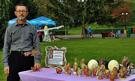 Нагадаємо, волинянин оздоблює яєчні шкаралупи металом та дорогоцінним камінням і за це його називають «волинським Фаберже». Анатолій Бойко один такий на всю Україну, а можливо, і на весь світ. Окрім того, талант нашого земляка навіки закарбували у «Книзі рекордів України». Також Анатолій показав оригінальну композицію у техніці витягування яєць.