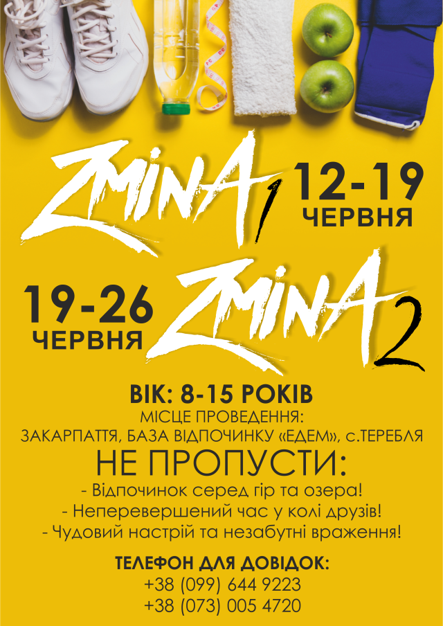 Першим відкриє сезон табір з 12 по 19 червня «ZminaCampІ», далі друга частина з 19 по 26 червня «ZminaCampІІ» (вік від 8-15) і завершує «YouthCamp» (вік 16-25) з 26.06 по 03.07.