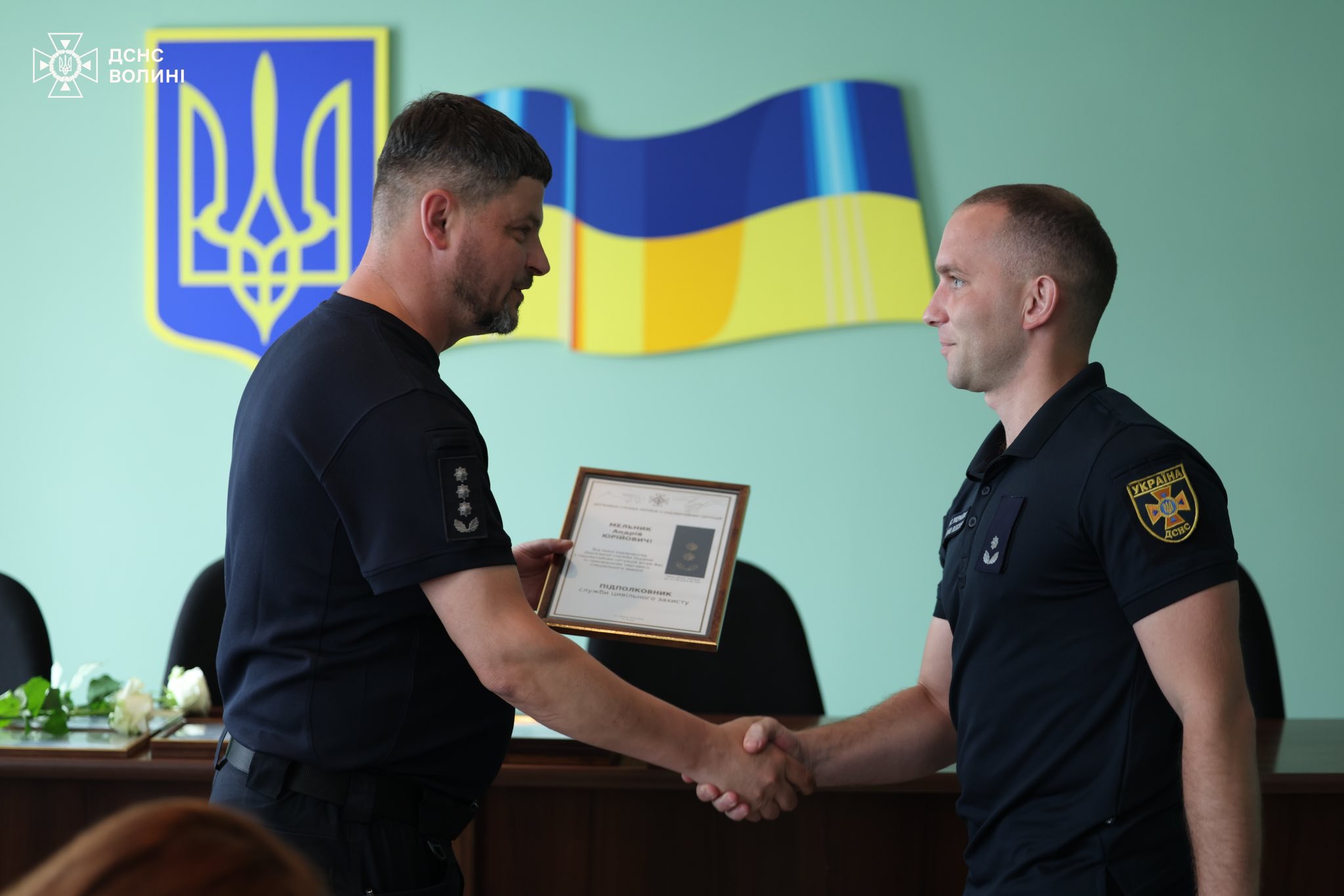 За проявлені мужність і героїзм в умовах воєнного стану, а також за сумлінне та високопрофесійне виконання службових обов’язків волинські рятувальники нагороджені відомчими відзнаками та отримали чергові спеціальні звання.
