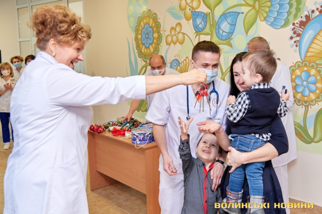 Першою ключі від омріяного житла – двокімнатної квартири – отримала сім’я неонатолога Андрія Бігуна, у якій підростають двоє синочків Матвій та Макар.«Коли стаєш старшим, усе менше віриш у дива. Але сьогодні таке диво сталося з нами! Це відроджує віру в казку, – не приховуючи емоцій, сказав пан Андрій. – Хочу подякувати усім, хто причетний до цієї ініціативи. Це просто неймовірний подарунок для нашої родини, адже ми з дружиною обоє немісцеві, тому тривалий час, працюючи в Луцьку, мусили винаймати житло. Тепер наші синочки зростатимуть у власній оселі».