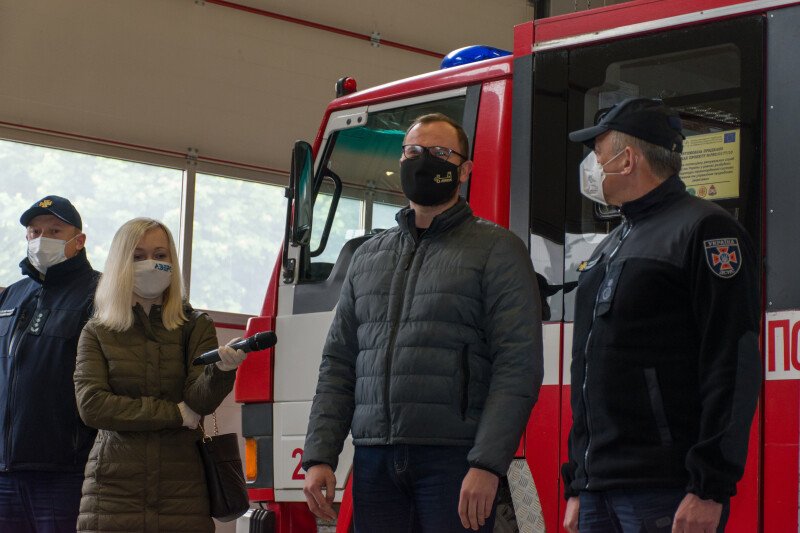 На передачу спорядження завітав радник міського голови Ігор Поліщук. Він подякував пожежникам за їх відповідальну та надзвичайно важку роботу і побажав, аби надзвичайних ситуацій у місті ставало все менше.