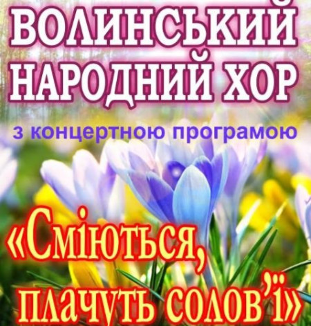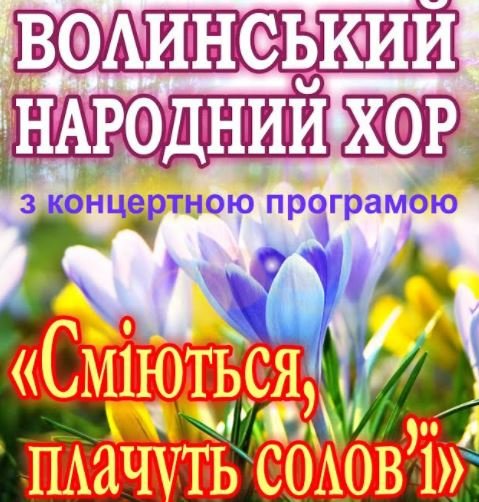 До свята 8 Березня Державний академічний Волинський народний хор представить чудовий весняний дарунок ‒ концертну програму «Сміються, плачуть соловʼї». Виступ відбудеться у Палаці культури міста Луцька 7 та 8 березня.
