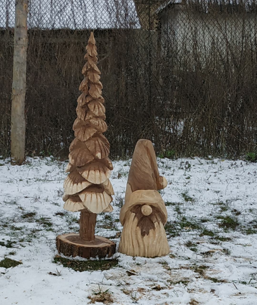 Сировиною для скульптур слугують колоди і дошки. Кілька днів тому завершив роботу над триметровою царівною-жабою. Нині майстер працює над новорічними символами – ялинками, сніговиками, дідами морозами і снігурками. Лучани зможуть помилуватися і придбати роботи талановитого різьбяра на передноворічній виставці в обласному центрі.