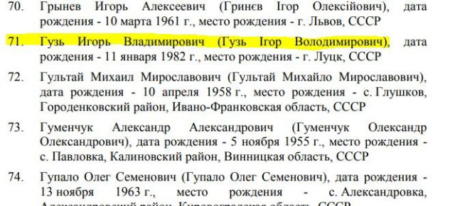 Ігор Гузь значиться у списку українських громадян, на яких поширюються російські санкції, під номером 71.