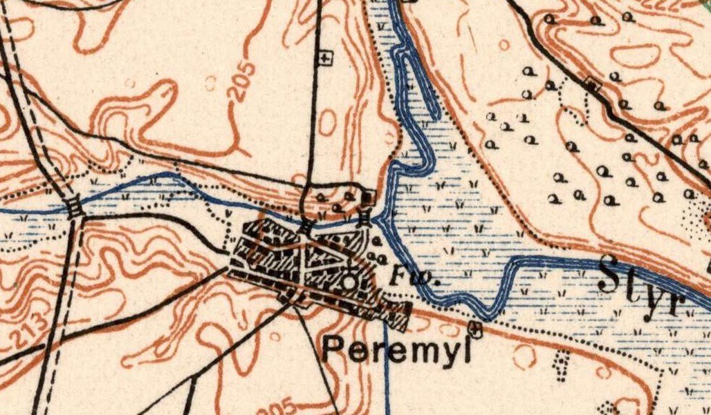 Перемиль на карті початку ХХ століття.