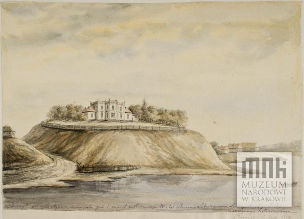 З XVIII століття на давньому городищі існував палац, який зобразив на двох малюнках польський художник Наполеон Орда. Спочатку ним володіла родина Петрушевських, а потім – подружжя Крижановських. Обоє були художниками. Пані Михайлина спочатку навчалася у художника Мілоша Котарбінського, а пізніше – у варшавській Школі красних мистецтв під керівництвом Конрада Крижановського. Була його улюбленою ученицею і в 1906 році вийшла за нього заміж. Відтак до 1914 року подружжя жило у Перемилі. Власне, за цей час є кілька картин із зображенням палацового інтер’єру.Михайлина Крижановська зі своєю подругою, художницею Емілією Висоцькою на картині Конрада Крижановського «При свічі». Фото з mnw.art.pl.