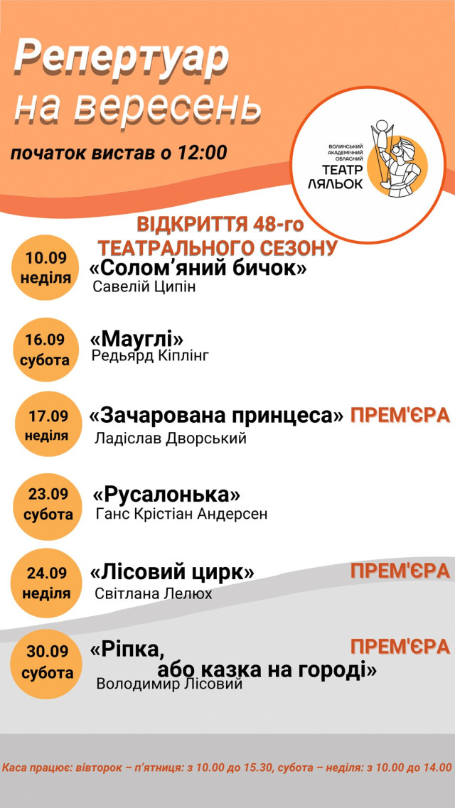 Найочікуваніша подія в театральному середовищі Луцька – відкриття 48-го театрального сезону у Волинському театрі ляльок – уже зовсім скоро: 10 вересня о 12:00.