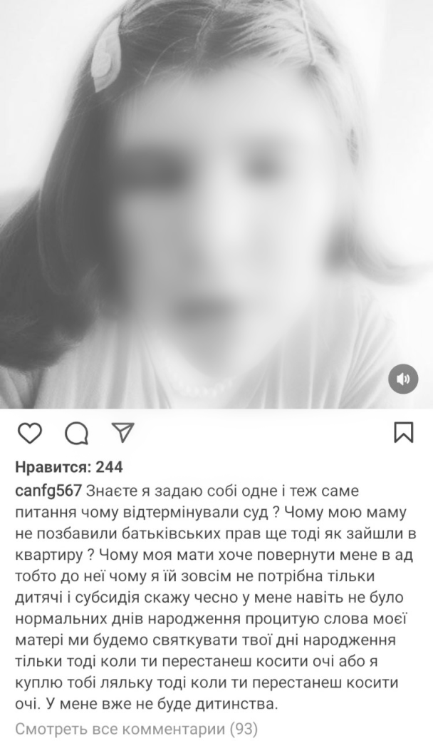 Читати ще: «Я не скотина, а людина!»: нові деталі вилучення 12-річної доньки у 78-річної матері в Чернігові