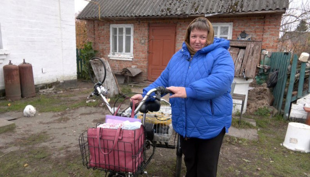 «Раніше я їздила звичайним велосипедом: це сім кілометрів до Крижівки, сім назад і два кілометри по селу. Електровелосипеда вистачає на 40 кілометрів, його швидкість – 30 кілометрів за годину», – говорить Тетяна Юфімюк.У місцевій крамниці Тетяна купує все необхідне, що просять люди, яких доглядає.