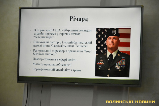 Річард Девіс 20 років служив в армії Сполучених Штатів Америки, як спецпризначенець виконував бойові завдання в Афганістані та Іраці. Зараз чоловік – військовий пастор, доктор служіння у сфері освіти, магістр прикладної теології та сертифікований спеціаліст із роботи з травмою. У Штатах він з дружиною працює із ветеранами війни та їхніми сім’ями. Своїми знаннями подружжя ділиться з українцям.Як зазначив Річард Девіс, в Америці, вивчаючи військову справу, аналізують, скільки солдатів ворога було знищено, розбирають психологію воїна під час бойових дій. Так, на полях бою часто знаходять зброю, яка не була застосована, бо в людей є природне бажання уникати вбивства когось іншого. Він навів приклад, що під час війни у В’єтнамі спостерігали багато задокументованих випадків, коли військові відмовлялися воювати. Тому завдання, яке мають виконувати більш досвідчені воїни, – це забезпечити подолання психологічного страху, аби військовий міг виконувати свої обов’язки.