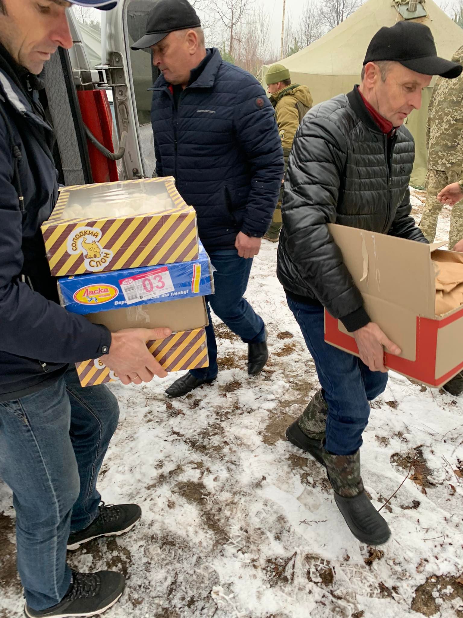 «А один чоловік днями кабанчика заколов, то передав і м’яса, і ковбаски, і кров’янки. Ще одна людина принесла зо два кілограми домашнього масла, – провадить пані Оксана. – Ми навіть не сподівалися, що наш клич матиме такий відгук. Багато хто казав: «Вони ж теж чиїсь діти, а ще й здалеку, не місцеві, хто ж їх тут пригостить?» А в когось і в самих сини служать, то теж відгукувалися. Одна жінка сказала: «Може, мого сина теж хтось нагодує». У мене синів немає, але від 2014 року ті хлопчики – усі мені як сини».Усю провізію попакували в ящики й вирішили, що в такий спосіб привітають стражів кордону з Днем Збройних Сил України.