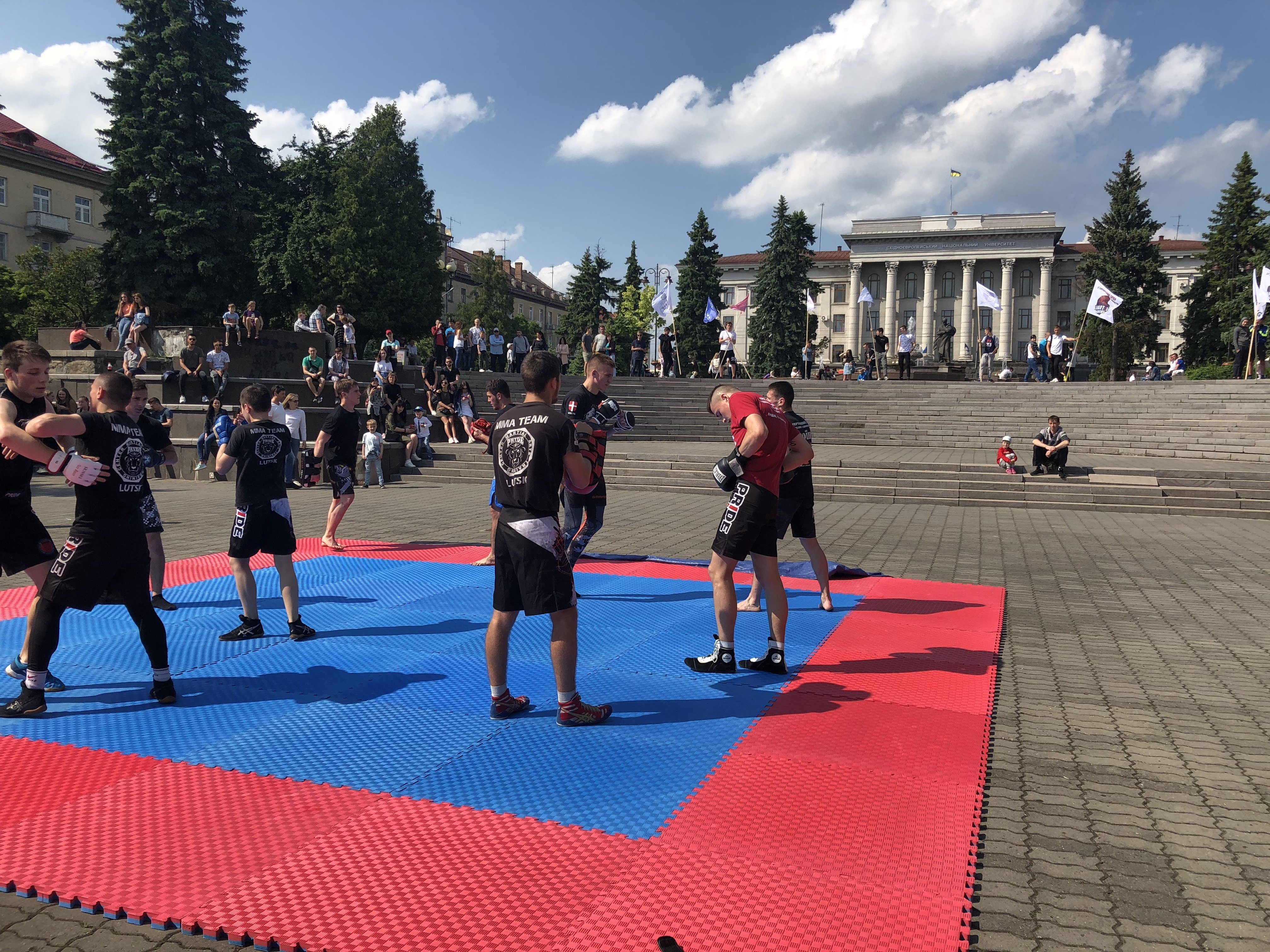 У центрі Луцька відбулося відкрите тренування учасників ІІІ Міжнародного професійного турніру з ММА «Воїни Любарта».