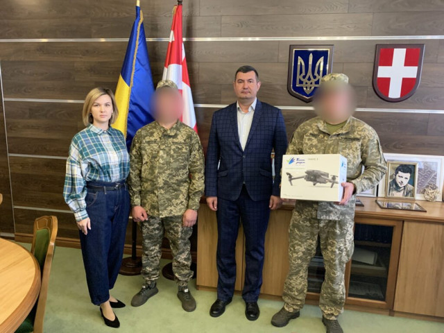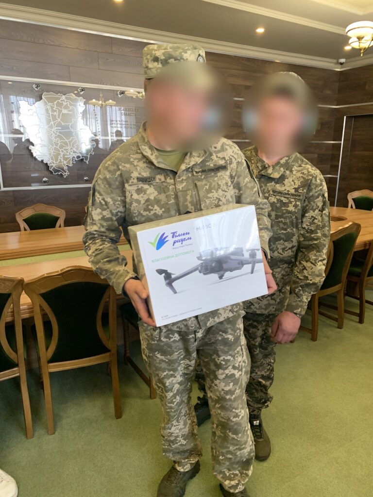 Дрон військовим передали голова облради Григорій Недопад та голова правління Фонду Катерина Шкльода.
