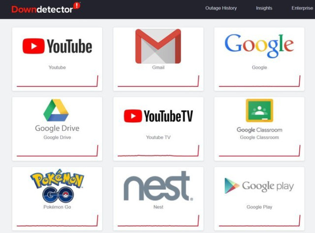 Крім того, користувачі повідомляють про проблеми з роботою пошти Gmail, сервісу Google Play, Google диска і навіть стартової сторінки пошуку Google.