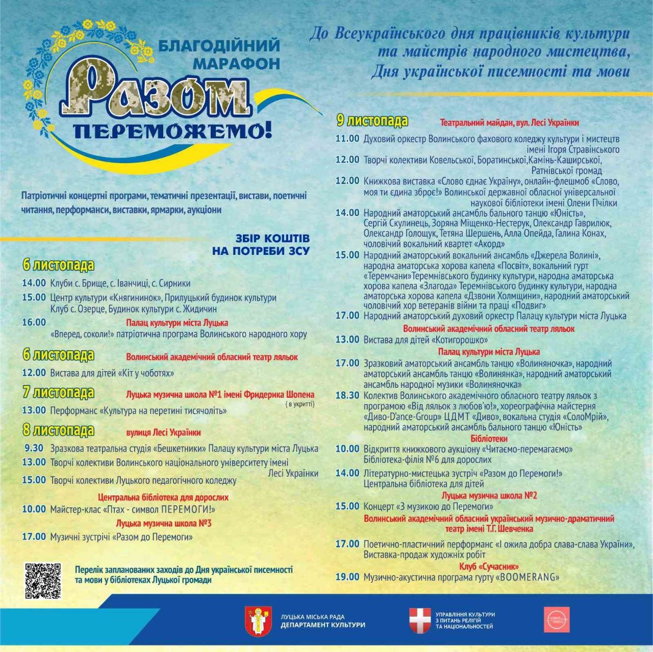 Концерт відбудеться в рамках благодійного марафону «Разом переможемо!» з нагоди Всеукраїнського дня працівників культури та майстрів народного мистецтва.