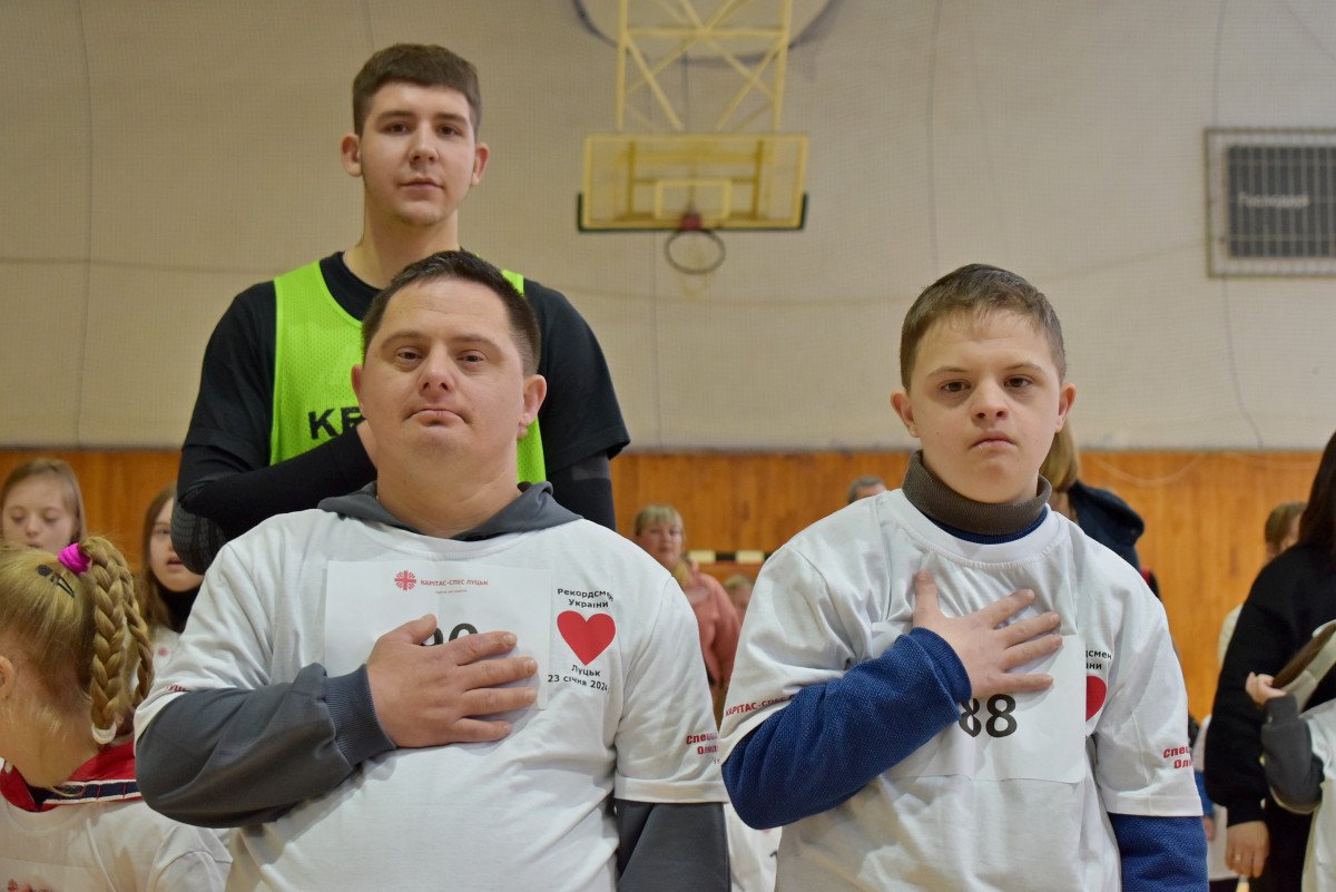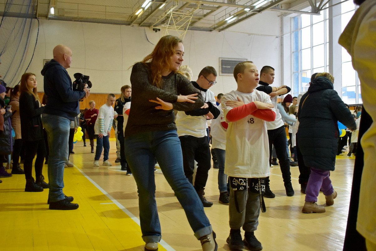 Разом із батьками, запрошеними гостями та студентами рекордсмени довели, що всі абсолютно рівні. Допоміг у цьому «сонячним спортсменам» хореограф, викладач ВНУ імені Лесі Українки Олександр Кашевський.Опісля діти милувалися гімнастичним номером гості з Полтавщини Вікторії Слюсаренко та разом підтанцьовували під пісні гурту «Флайза».