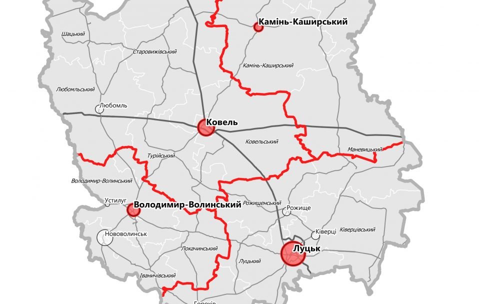 Ковельський район (з адміністративним центром у місті Ковель) у складі територій Велимченської сільської, Велицької сільської, Вишнівської сільської, Голобської селищної, Головненської селищної, Дубечненської сільської, Дубівської сільської, Заболоттівської селищної, Забродівської сільської, Ковельської міської, Колодяжненської сільської, Луківської селищної, Люблинецької селищної, Любомльської міської, Поворської сільської, Ратнівської селищної, Рівненської сільської, Самарівської сільської, Сереховичівської сільської, Смідинської сільської, Старовижівської селищної, Турійської селищної, Шацької селищної територіальних громад, затверджених Кабінетом Міністрів України;