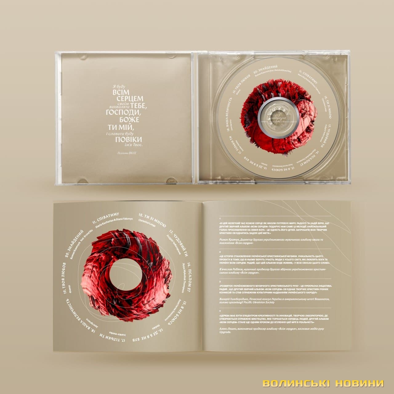 У Києві презентують другий україномовний альбом молодіжної християнської музики «Всім серцем», директор якого – луцький пастор Роман Кравчук. До музичної збірки ввійшли десять пісень від українців з різних частин світу, кожна із яких – окрема життєва історія виконавця.