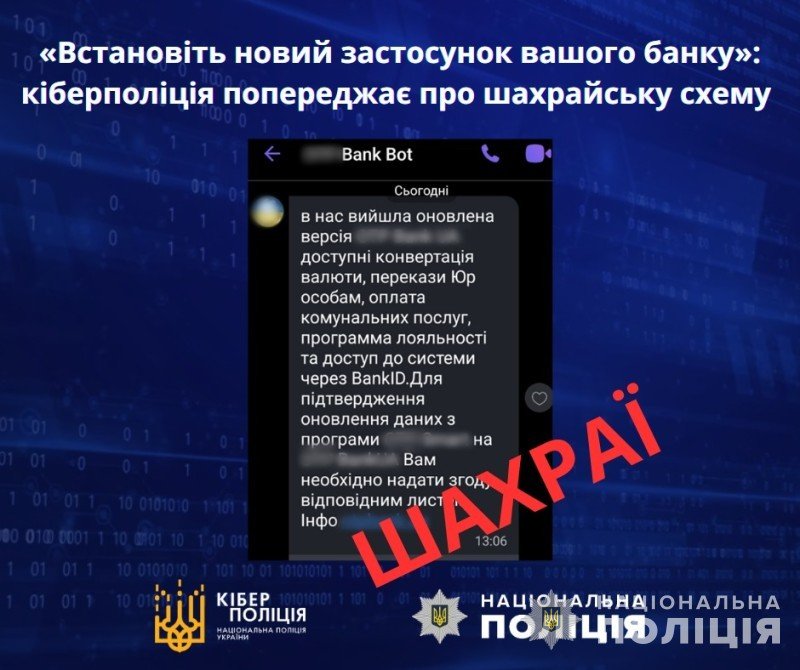 «Встановіть новий застосунок вашого банку»: кіберполіція попереджає про підступну шахрайську схему