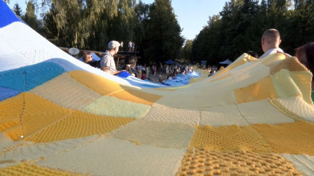 З її слів, полотно розміром 34 метри та 40 сантиметрів складається з 2064 в’язаних клаптиків, їх створювали жителі 21 області.
