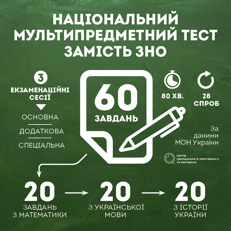 За інформацією Міносвіти, національний мультипредметний тест складатиметься із трьох дисциплін: української мови, математики та історії України. З кожного предмету буде по 20 питань. Загалом іспит триватиме 80 хвилин.