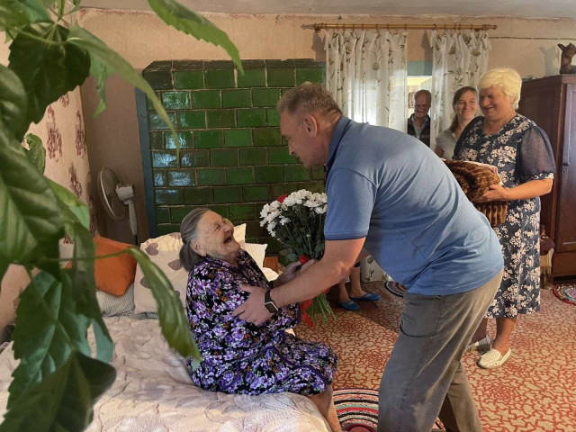З такої нагоди завітав до довгожительки й селищний голова Валерій Свіржевський.
