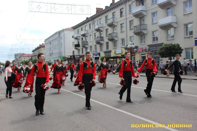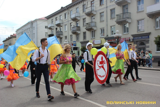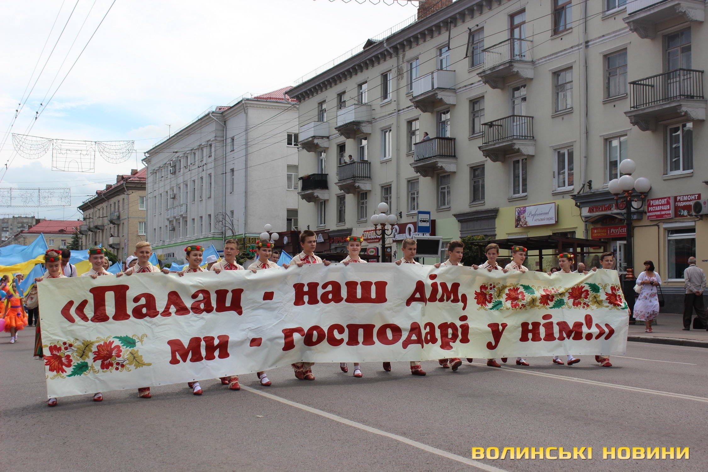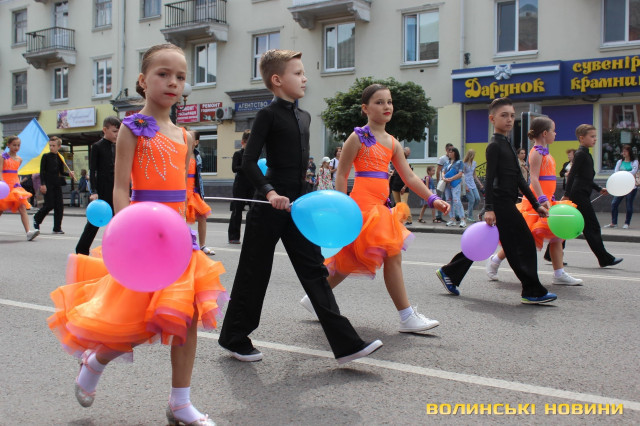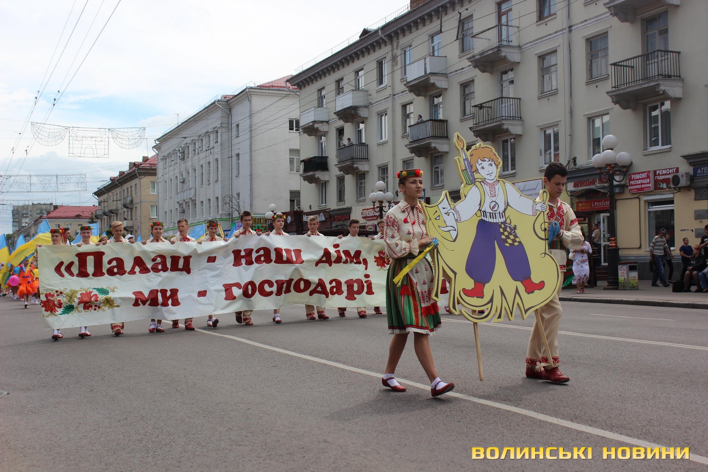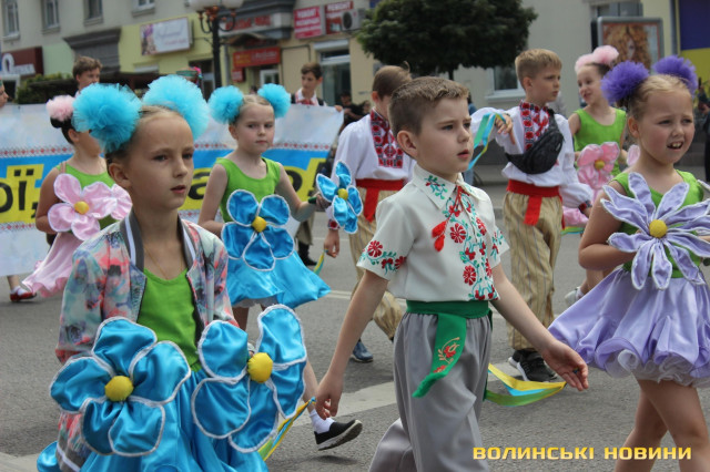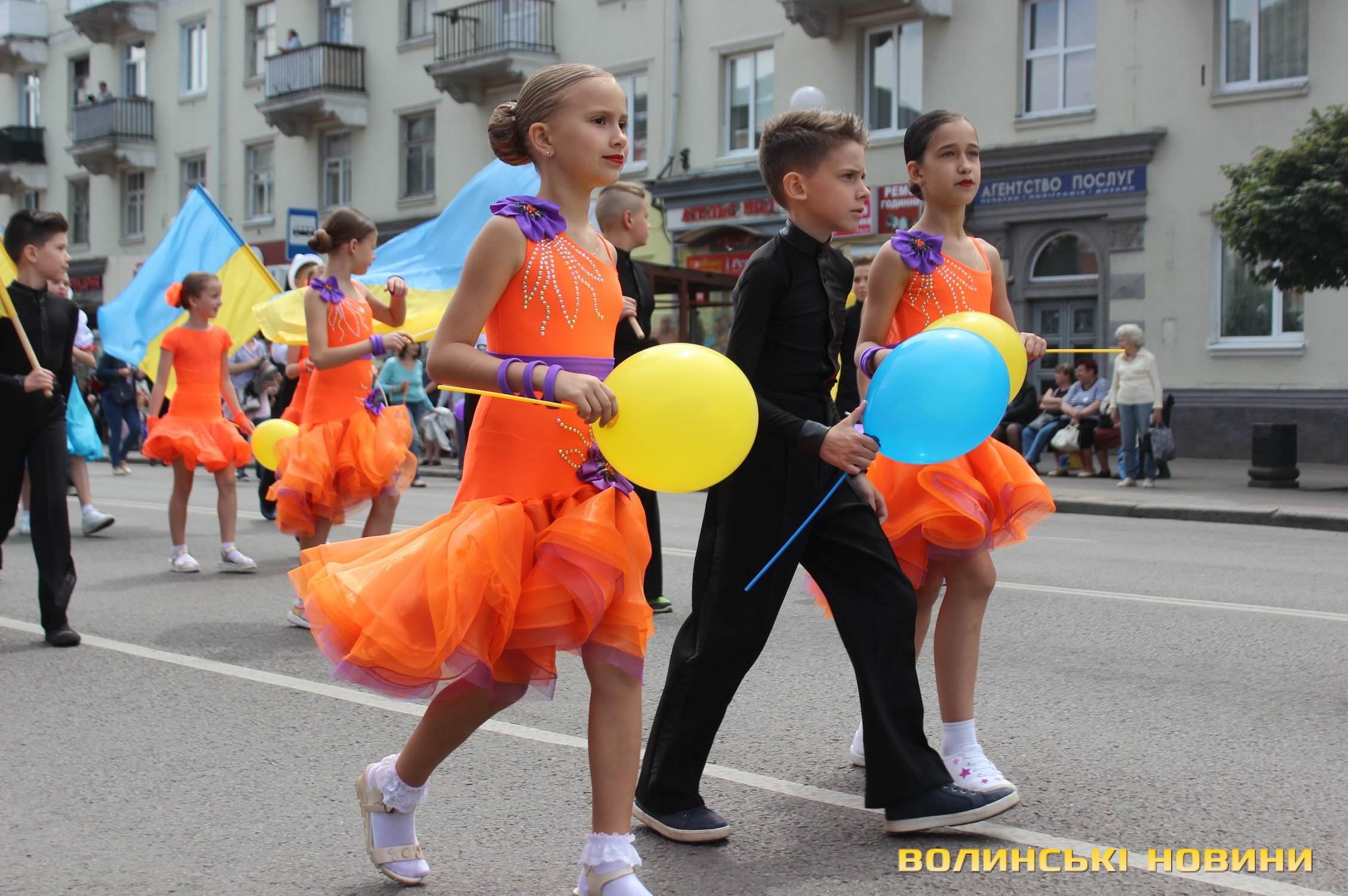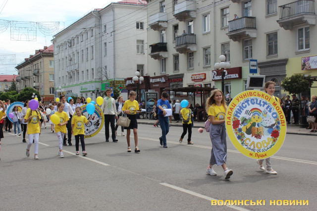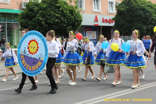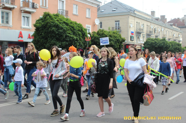 Діти з гуртків та таборів, котрі діють при Палаці учнівської молоді вирушили від будівлі рідної установи в напрямку центральної площі. Школярі пройшли вулицею Шопена та проспектом Волі.
