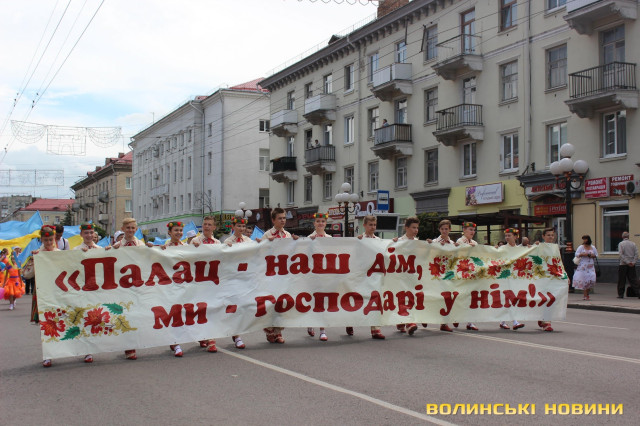 Вихованці Палацу учнівської молоді йшли у супроводі своїх батьків і наставників.У руках діти несли транспаранти з гаслами «Всі ми діти твої, Україно!» та «Палац – наш дім, ми – господарі у нім!»Довідково: