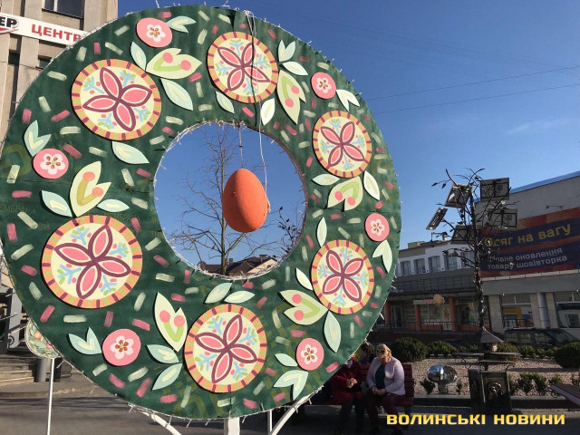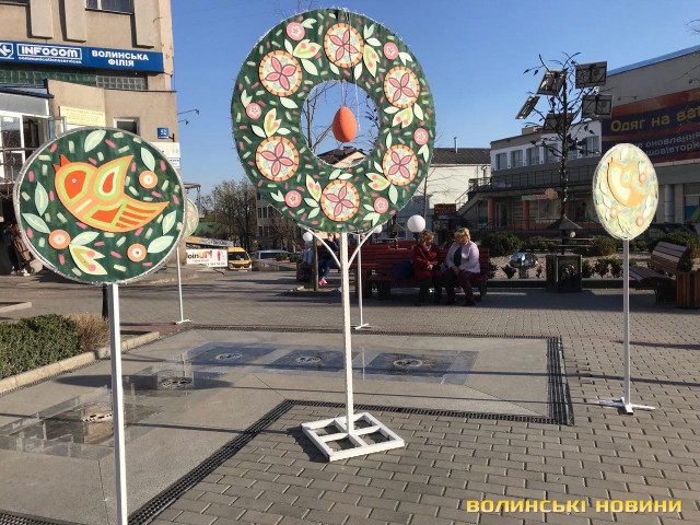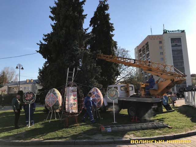 Окрім того, вчора, 17 квітня, на Театральному майдані встановили великі писанки, а зараз тривають роботи над їх освітленням у темну пору доби.Також металеву червоно-білу писанку змонтували також біля РЦ «Промінь» на площі Президента Грушевського.
