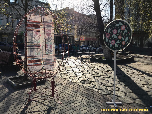 Металеві конструкції з оригінальними орнаментами, писанками та пташечками розмістили уздовж усієї пішохідної частини.