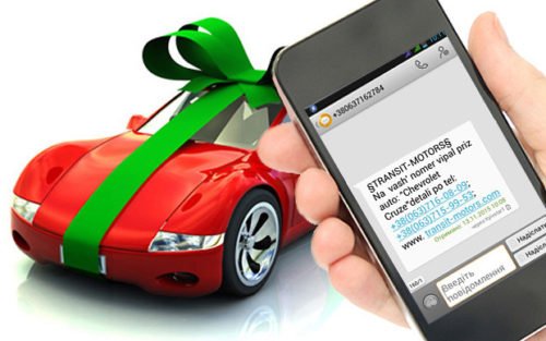 На мобільний телефон прийшло повідомлення “На ваш номер випав приз – автомобіль”. За більш детальною інформацією потрібно було звернутися за вказаним у повідомленні номером. Коли “щаслива власниця” зателефонувала, співрозмовник, який відрекомендувався представником компанії, що проводить розіграш, повідомив про деякі умови, за яких можна отримати автомобіль – комісійні за послуги транспортування і страхування.